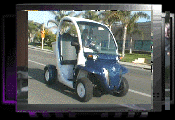 By 7 am the next morning our GEM was ready to roll. We noticed the charger had a quiet sounding cooling fan while charging and when the car was fully charged the fan turned itself off. The first day we drove up and down the streets of our neighborhood to get used to the car. This took about a minute! The GEM takes off from a full stop like a rocket! To make the GEM street legal there is a speed restriction governor on the accelerator that holds the speed at a safe 25 MPH, however because of its size you actually feel like you are going much faster... Truly, I own a Trans Am that burns rubber but this GEM is just as fun to drive! The roads near our home are marked 40 MPH and up, so we are restricted to criss-cross the major intersections and use back streets - This gives you a new view of your neighborhood - We enjoyed taking things a little slower and zooming around the quiet backstreets. The reactions we got from people in passing cars was amazing. They ranged from amazement, shock, disbelief, wonder and even a few people who raced around corners to get a better view. One thing we did notice which is unfortunate is that out of 200 people who see you driving in the GEM there seems to be one person who seems to think the GEM is a golf car that doesn't belong on the street - The first time this happened we didn't expect it - The person rode on our tail as if to make us pull over to get out of his way. We did pull over even though he was legally wrong by following so close. Being realistic we will anticipate some negative reactions and expect to be cutoff at intersections. We stopped for lunch at a nearby pizza parlor and you would have thought Elvis had parked in the front parking space! The adults who stopped and walked around the car were as impressed as the children who were laughing and saying "Can we go for a ride?" People actually walked over to our table to ask how they could buy one, how much it cost, etc. We didn't know this was going to be such a social ice breaker. |